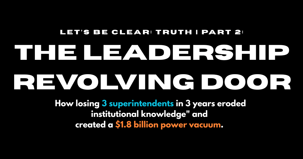 Let’s Be Clear: Truth | Part 2: The Leadership Revolving Door How losing 3 superintendents in 3 years "eroded institutional knowledge" and created a $1.8 billion power vacuum.