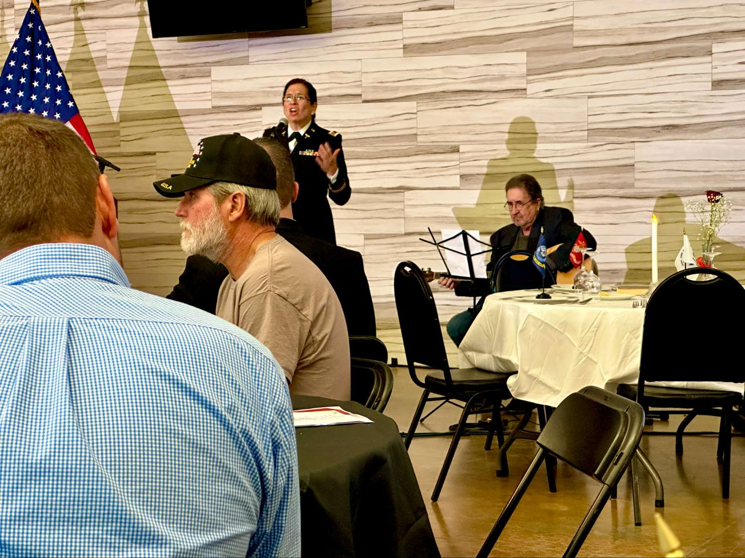 Major Sheri Ledford of the US Army graced the event with a patriotic performance of the National Anthem. The guest speaker for the event was Thomas E. Tuggle, II, the current Sheriff-Elect of Desoto County and a former Active Duty Marine. Tuggle, with his 30 years of experience in law enforcement and a history of graduating with distinct honors from every military or law enforcement training course he attended, brought a wealth of knowledge and experience to the event. His election as the second Black sheriff in DeSoto County's modern era was a historic moment, and his presence at the luncheon was a testament to his commitment to serving and supporting veterans and law enforcement officers.