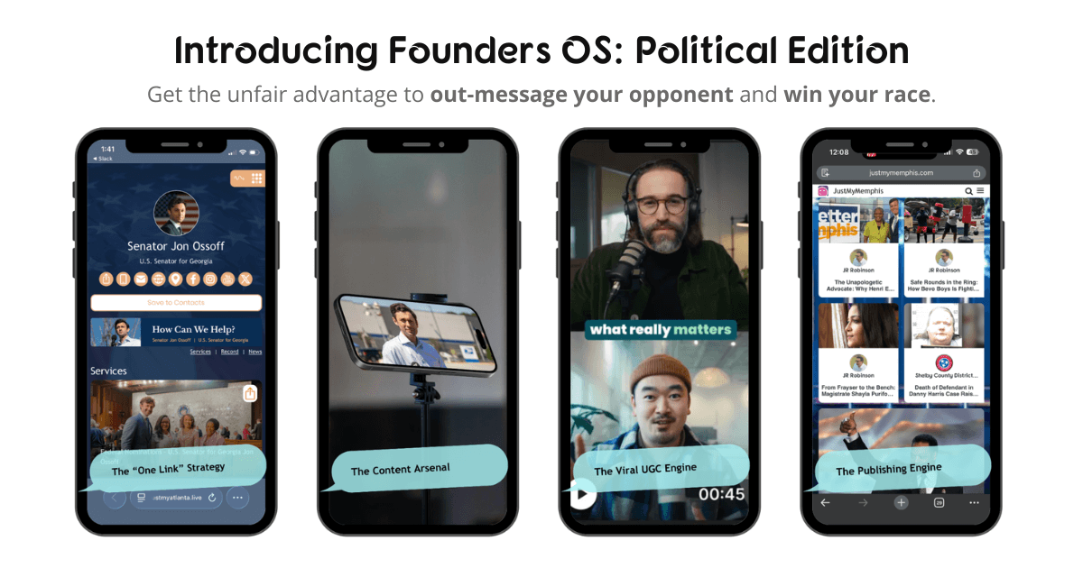 Built for founders, political candidates (Campaign OS), and serious brands. When you need to dominate the feed, the Growth OS is your engine. It includes our "done-for-you" AI Content Studio, Real-Time Analytics, and the User-Generated Content (UGC) Engine to turn your biggest fans into your loudest marketing channel.